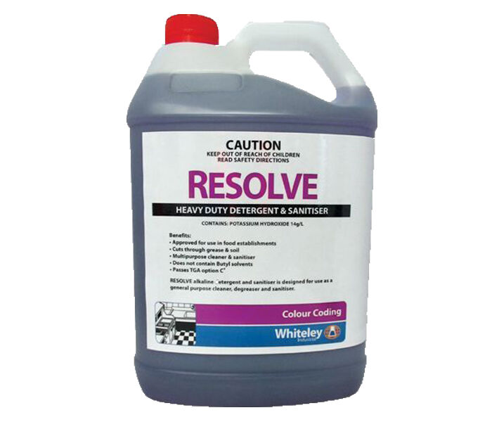 Resolve is an alkaline detergent designed for use as a general purpose cleaner, degreaser and sanitiser.