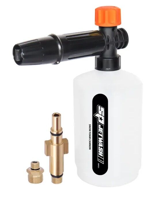 FEATURES: Provides a thick, high coverage snow foam Easy installation - M22 adapter & bayonet fitting included 600ml detergent bottle High quality components Max pressure: 186bar INCLUDES: Foam Gun Assembly AR Blue Clean style Bayonet Fitting M22-14mm male connector SUITS: All bayonet fitting SP Jetwash, AR, Torini and Scorpion pressure washers that operate above 1800psi. Also suits other brands that use the industry standard M22 screw connection between trigger and lance, both petrol and electric.