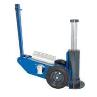 High tonnage hydraulic jacks for the mining and construction industries Designed for off-road maintenance on heavy duty industrial machinery All steel, heavy duty chassis build to fit harsh environment Large rubber tyres allow easy positioning on challenging surfaces Innovative chassis construction facilitates jack repair, even wheel changing on site High ground clearance for clearing rail and rough terrain, etc. Specs: Capacity: 100 tonne Air supply: 8-10 bar Air consumption: 12000 l/min Min height: 460mm Max height: 595mm Handle length: 1360mm