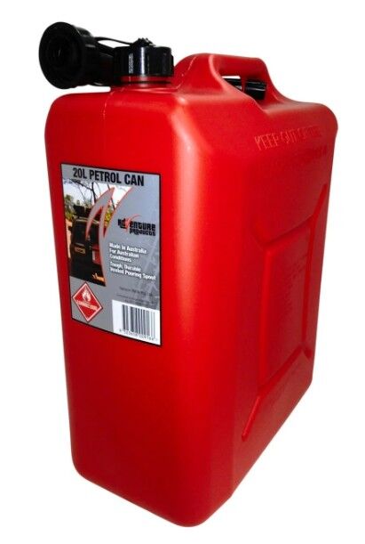 Features: AS/NZS 2906 Approved Vented flexible pouring spout Made in Australia Pourer fits car and garden tool fill points Compact size Made in Australia and complying with Australian Standards for the transportation and storage of fuel (AS/NZS 2906), this container is extremely handy, durable and is ideal for domestic or industrial use. Supplied with a vented flexible pouring spout that can fit car or lawn mower fill points, this can meets all fuel storage requirements.