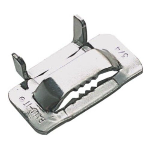Ear-Lokt style buckle for standard duty applications including hose assemblies, cable bundling and general fastening