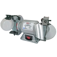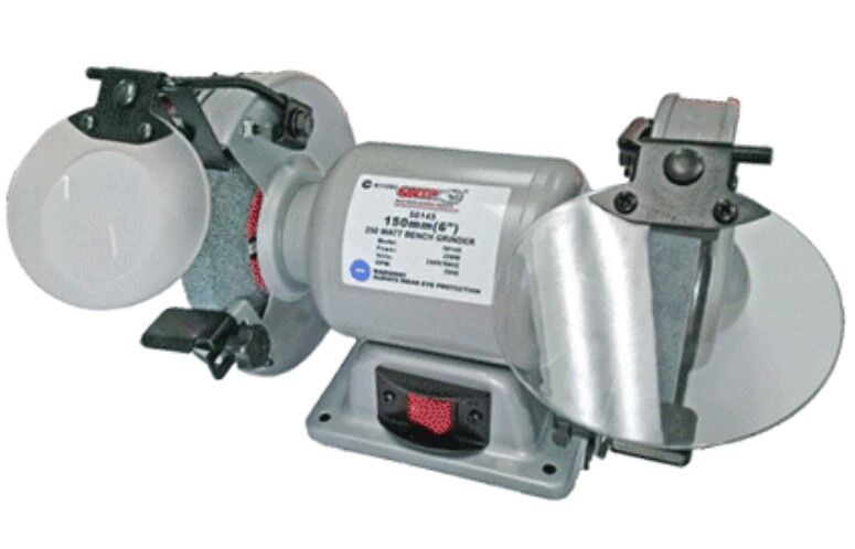 For use in grinding, shaping or sharpening applications in the workshop or for the serious home handyman. Bench top mounted with an easy accessible ergonomic on/off switch. FEATURES: 250 watt induction motor 2 x 150mm (6") grinding wheels ,1 x 36 grit and 1 x 60 grit Protective safety lenses, fine grit with magnifier for detail grinding Job supports with drill bit sharpening guide SPECIFICATIONS: 240 volt/50hz 250 watt single phase induction motor 10 Amp domestic plug 150mm (6") x 20mm grinding wheels