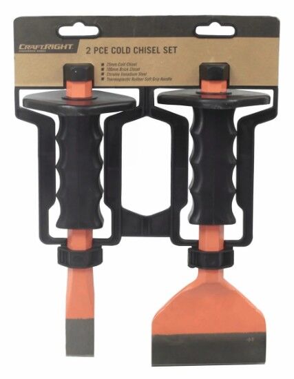 The Craftright 2 piece Cold chisel set is perfect for most masonry tasks, featuring a 25mm Cold Chisel and 100mm brick bolster. Made from Hardened steel and featuring plastic handles to protect your hands during use.