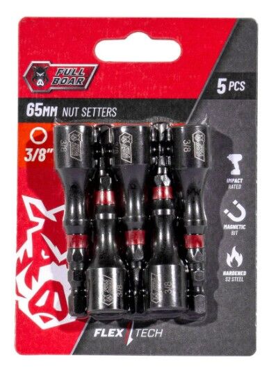 Full Boar 3/8" x 65mm Magnetic Impact Nut Setters - 5 Pack - 0725580