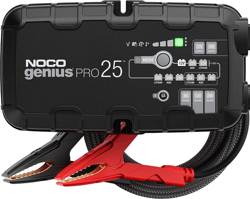 Introducing the all-new GENIUSPRO25, a 6-volt,12-volt, and 24-volt fully-automatic professional smart charger, maintainer, power supply, and battery-desulfator with temperature compensation rated at 25-amps for all types of automotive, marine, and deep-cycle batteries.