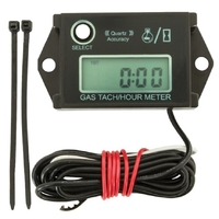 Digital Resettable Tachometer / Hour Meter Large LCD display Reliable, stable and extremely accurate Timing System: TOT (Total accumulated hours non-resettable) Timing System: Job (Recording partial time of engine – viewable and resettable) Dustproof and waterproof (Waterproof Rate IP68) When the engine starts LCD real time displays current speed Easy to view Easy installation Fits: Works on any two or four stroke petrol engine up to eight cylinders.