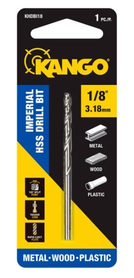 Drill into metal, wood and plastic with the Kango 1/8" Imperial HSS Drill Bit. Its thicker, tapered core provides additional strength to prevent bit breakages. The 135° Split Point prevents bit wandering for more precision while enhancing startup speeds.