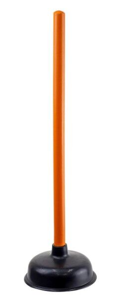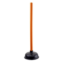 The Kinetic toilet plunger, crafted with a sturdy timber handle and a black rubber head, is engineered to generate a robust vacuum. This potent suction capability effortlessly removes obstructions in toilets.