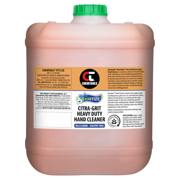 Kleanitize Citra-Grit Heavy Duty Hand Cleaner is a premium, industrial strength hand wash containing an active chelating ingredient that binds with common heavy metals, allowing them to be washed away with water. Its solvent-free formula neutralises strong workshop odours and kills a broad array of bacterial germs without stinging or burning cuts, scrapes, and open wounds, leaving skin feeling smooth and smelling pleasant.