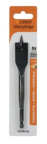 LTSB-22 Features: 22mm heavy-duty spade bit: Sized for accurate timber drilling in framing, fit-off, or general construction. High-carbon steel construction: Heat-treated for strength, edge retention, and long life .Precision-ground tip and chisel edge: Delivers quick starts and smooth, clean hole finishes. Black oxide corrosion-resistant coating: Reduces rust and edge wear in harsh jobsite conditions. Hang hole for storage or wire pulling: Adds convenience during setup and teardown.