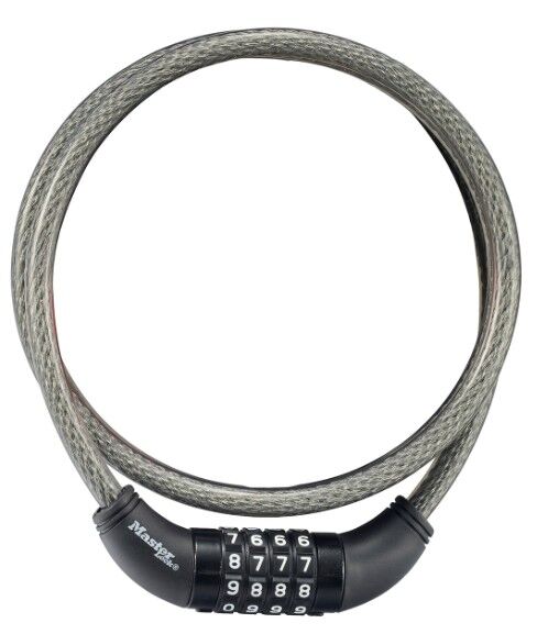 Features: Easy to set & reset numeric combination Braided steel for strength and flexibility Protective vinyl coating helps prevent scratching 4 dial combination security for keyless convenience Set Your Own Combination Cable Lock is 5ft (1.5m) long and features 10mm diameter braided steel for maximum strength and flexibility. The protective vinyl coating protects against scratches. The 4 dial combination security offers keyless convenience. The Limited Lifetime Warranty provides peace of mind from a brand you can trust.