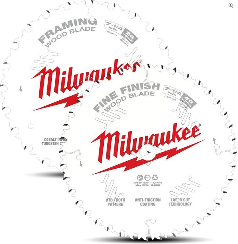 Milwaukee 48418732 2pce 184mm (7-1/4") 24-Tooth Framing & 40-Tooth Fine Finish Wood Circular Saw Blades Set - W199655