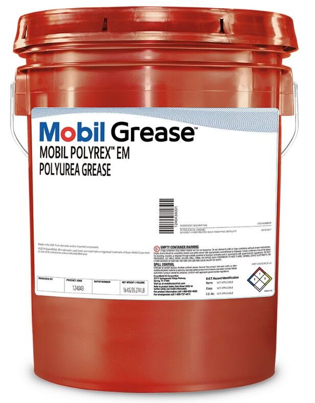 Super-premium Mobil Polyrex EM Series greases are specially formulated for electric-motor bearings. The advanced thickener formulation and proprietary manufacturing techniques provide improved bearing performance and protection for long electric motor life.