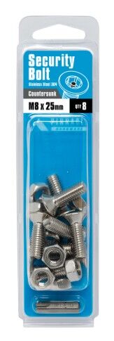 Pinnacle Hardware's 304 Stainless Steel Security Bolts provide added security for peace of mind with its tamper-proof Torx system. Suitable for a wide range of applications both indoor and outdoor, these Flat Head security screws come in a pack of 8 and are the perfect solution for your next project.