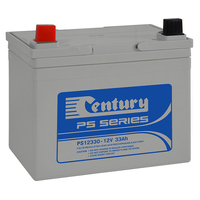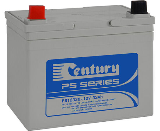 Century PS 5-year VRLA batteries are a range of high performance multi-purpose batteries which provide dependable primary and back-up power in domestic and commercial applications. Manufactured to the latest International standards using premium grade raw materials and superior manufacturing processes, Century PS batteries provide reliable, trouble-free power in high-service-life applications. Dimensions: 195 (L) x 130 (W) x 164 (H) x 178 (TH) Warranty: 12 months Conditions apply. Refer to individual warranty statements affixed to each product. Terminal type: T5 Volts: 12 AH: 33 Weight (kg): 11.20 Compatible Battery Chargers: CC1206-XLi Special features: Absorbed Glass Mat, Maintenance Free, Vibration Resistant.