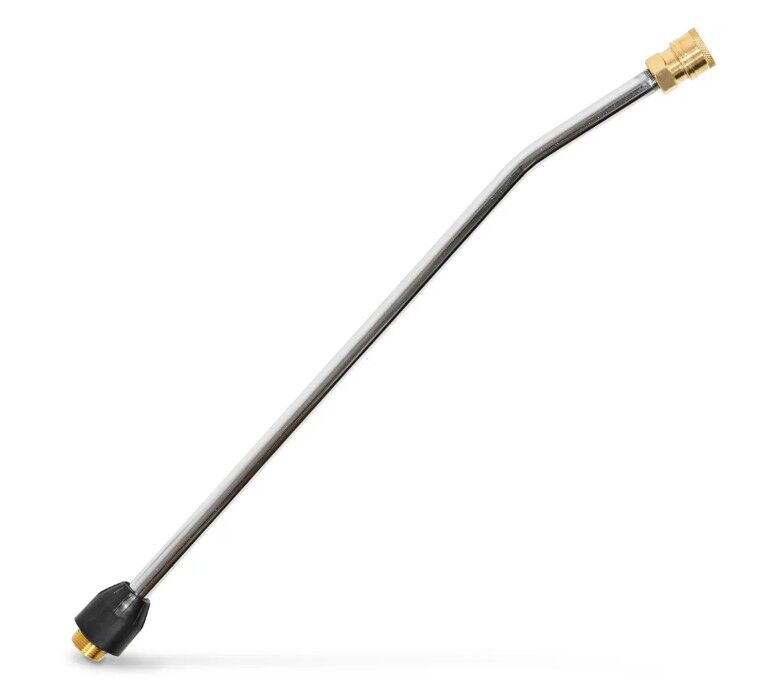 Description This stainless steel pressure washer lance comes with a brass thread and brass quick coupling for professional use. The bent end is designed for hart to reach areas, easier to use compared to traditional straight wand. Designed to suit SABER Pressure Washer Gun (Part No: SPAC4) and high pressure washers for up to 4200 PSI. Specifications: Stainless steel lance with bent end PSI Rating: 4200 PSI Gun End Fitting: M22 Solid Brass Male Screw Connection Nozzle End: Quick Connect Fitting