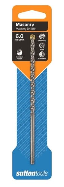 Sutton Tools' masonry drill bits are tradesman quality, with tungsten carbide tipped and double spiral flute for greater dust extraction and longer drill life. Ideal for use in natural and artificial stone, masonry, brickwork and concrete.