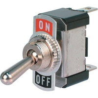 Description: OEX Toggle Switch On/Off SPST (Contacts Rated 20A @ 12V)Warranty: One Year Number of Terminals: 2 Power Rating [Amp]: 20 Switch Action: On - Off - SPST Voltage: 12 Lamp Colour/s: Not Applicable Mount Diameter: 12mm Mount Length: 3mm Number of Poles: 1 Number of Positions: 2 Switch Type: Toggle Item Type: Switch Switch Illumination: Non Illuminated Weight: .02kg Features: Single Pole, Double Throw 2 Blade terminals Silver contacts Metal body Supplied with On - Off tab 10Amp @ 24V M12 x 0.75 thread Can use 81264BL seal boot