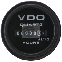 Description: VDO Analogue Hourmeter Gauge Warranty: Two Years Voltage: 12 to 80 Item Type: Analogue Size: 52mm Weight: .24kg Features: Analogue Non-illuminated Black bezel Range: 0 - 99999.9 hours Voltage: 10 - 80V Dimensions: 52mm diameter